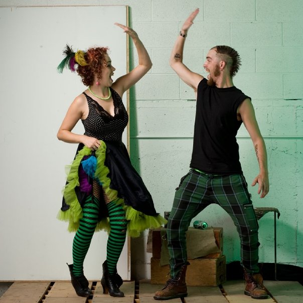 Vaudie- That was Amyrose (known on stage as Rummy Rose) and my side project called the Dishrag Dollies. We did a couple of duet burlesque acts and the dance that we did in Mykee Ramen’s video was originally choreographed to She Said by THE CRAMPS. He asked us to do the music video and it made it pretty easy when he asked us to do the dance we already had choreographed. just tweaked a few things to go along with the song, went out to the landfill wearing gunny sack dresses and leopard print cave girl outfits and filmed us a music video. It was really fun, and I would totally do it again. I’ve always loved dancing to live music and collaborating with local and like minded bands and performers.