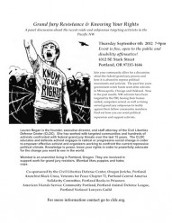 Lauren Regan and Wombat will be giving a presentation on grand jury resistance on September 6th in Portland and September 7th in Olympia.