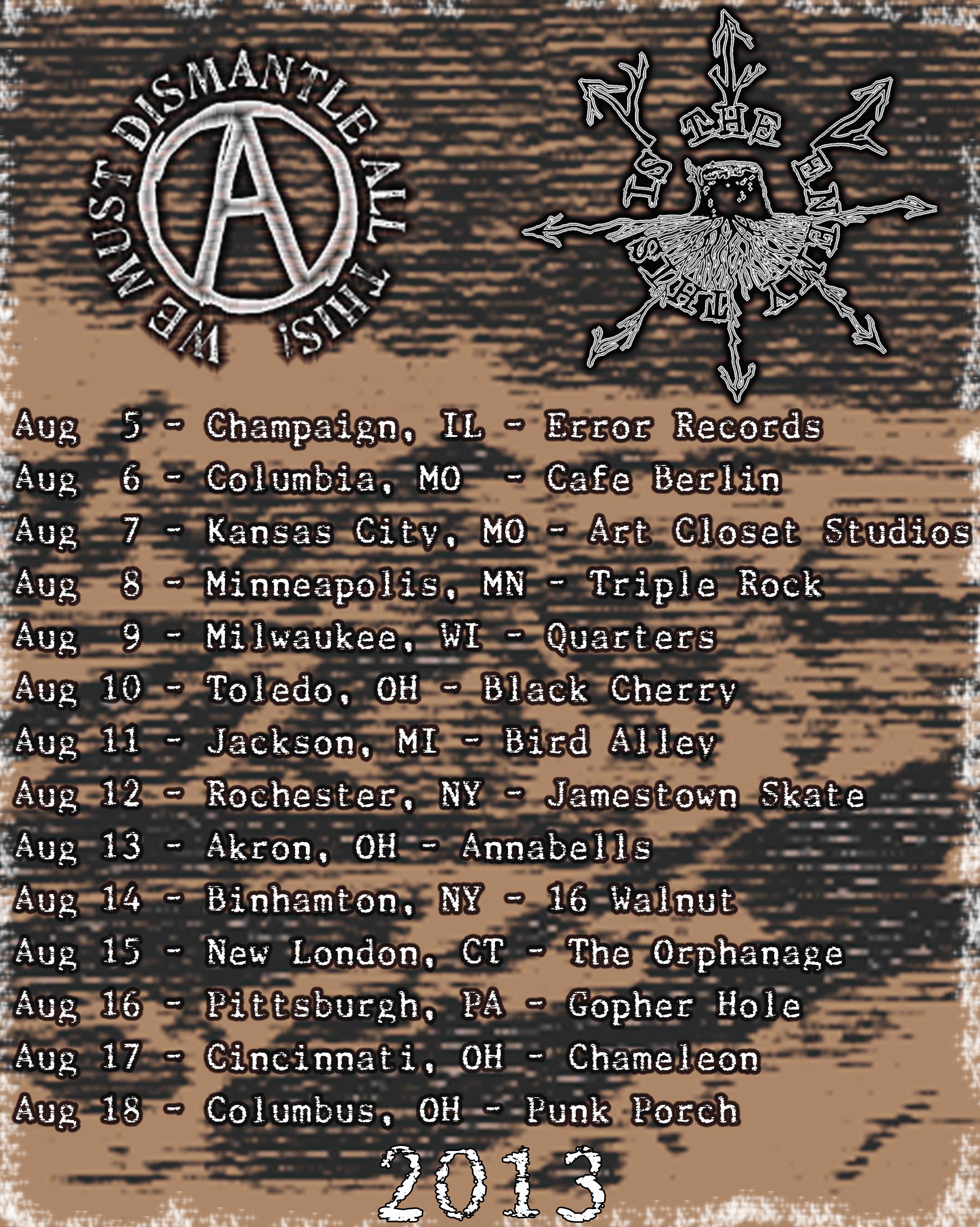 We Must Dismantle All This (Illinois) will be hitting the road later this week for an East Coast / Midwest tour. Their discography is currently available for FREE DOWNLOAD on Bandcamp.