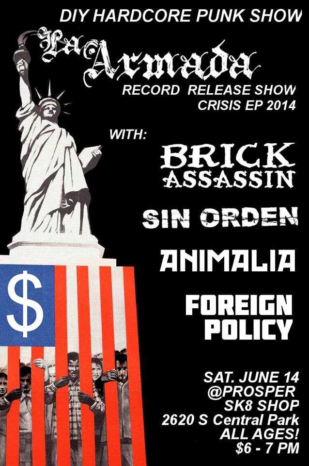 Not skipping a beat since being back from tour “La Armada” is hosting their Release show for the “Crisis EP” this Saturday the 14th at Prosper Skate Park with some south side Chicago Staples like Sin Orden, Animalia, Brick Assasin and new comers Foreign Policy. Don’t be an asshole, go support if you’re in the area.