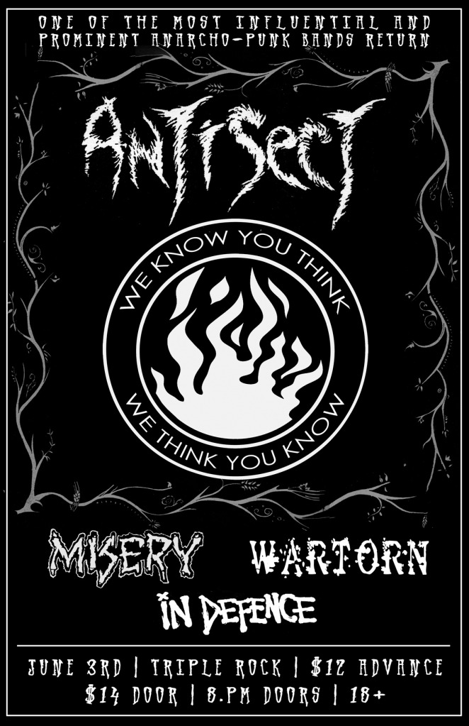 0 ANTISECT, MISERY, Wartorn & In Defence At The Triple Rock June 3rd!