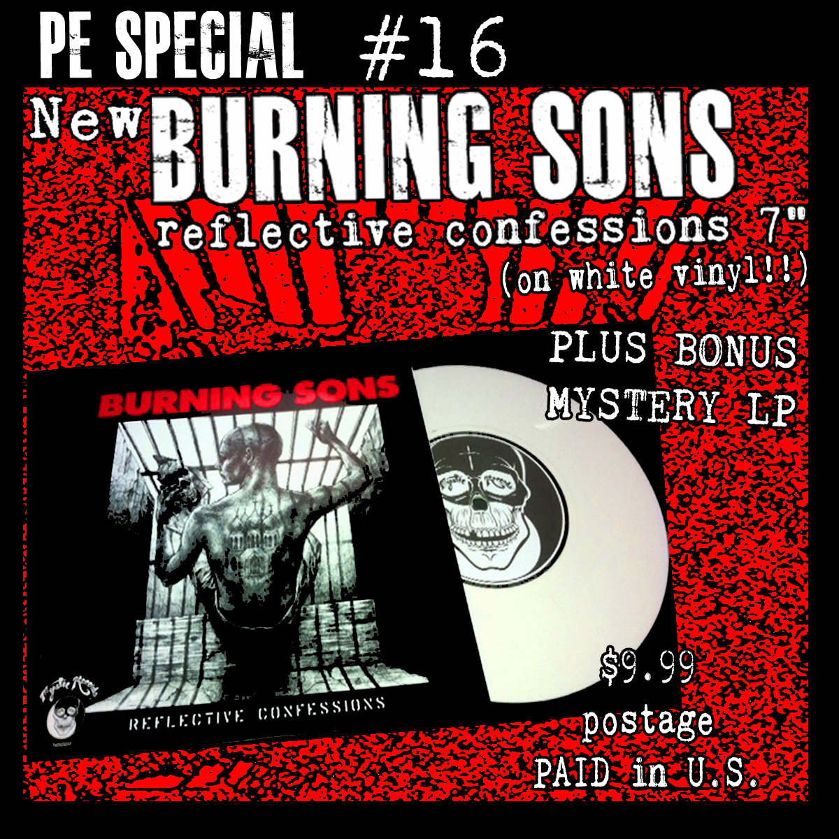 Some of you are already familiar with Milwaukee’s BURNING SONS but for those who are not let me bring you up to speed. BURNING SONS were the first and only band in decades to impress the folks at Mystic Records (Aggression, RKL, Scared Straight, etc.) enough to invest their money in a “new band”. Not that these guys are young… Burning Sons is made up of old school punks who have been active in the scene since the 1980’s. In fact their drummer Dan runs an independent record store (Rushmore Records) and has been stocking releases from labels like Profane Existence and Mystic for years now. They know the scene. They/ve done their time and their music proves it! It’s tight, fast, aggressive and punk as fuck. This is their third release and by far their best! Musically it reminds me of a slight mix between Discharge and Negative Approach while sounding completely origional at the same time. Lyrically they are dark and brooding. The disturbing artwork on the cover is really quite fitting. This is a solid package from start to finish with limited edition white vinyl, silver flood print on the inside cover and three songs that redefine the sound of Milwaukee punk. This is brand new!