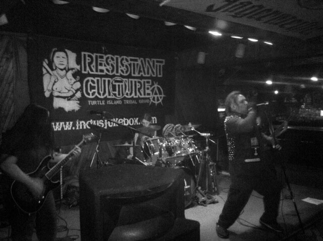 Surg: Yeah that’s actually how I lost this finger (holds up hand with partially missing finger). Just kidding (laughs), but not about disagreeing though, because that happens and is important. Just because we are friends doesn’t mean we share exactly the same perspective, and we don’t sometimes. Dialogue about the lyrics is an important process to this band. When a song’s lyrics come together, we elicit and provide feedback. Each of us wants to write about things we have feel strongly about. Since our perspective is unique to us as individuals, dialogue is necessary to figure out what the position of our band is on the subject matter. Through these discussions our perspective becomes better informed. I really value both Ezmerelda and Liz’s perspective which have both challenged and supported my own at different times. Liz: the three of us talk about the general idea or theme of a song before attacking the lyrics, so we’re generally on the same page. Fine tuning is a normal part of the process, when we really want to be clear with what we’re saying though.